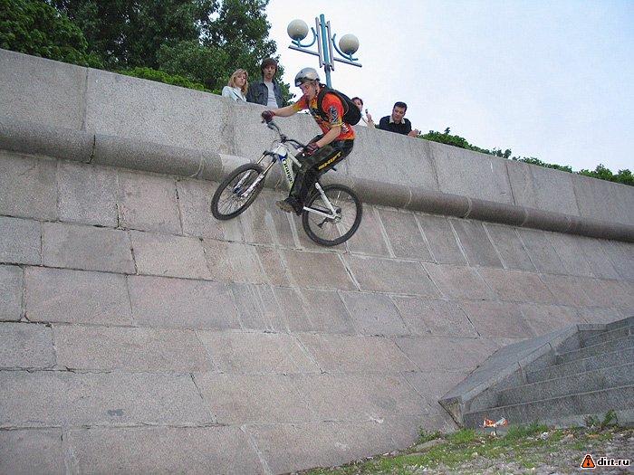 Съезжать там вниз по стенке, с выдергиванием в конце. Либо можно оттолкнуться и дропнуть, но на хардтейле я так там ни разу не пробовал