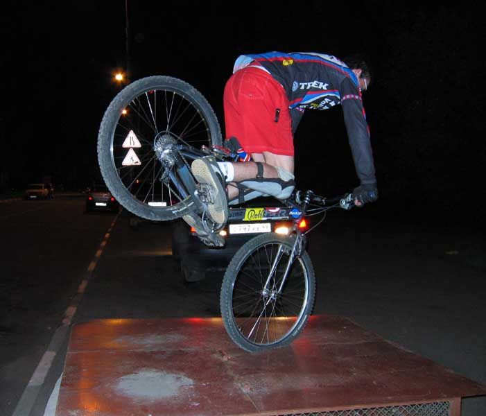 То, что у других - трюки, у Санчеса - просто покатушки! -:)) На этой фотке классно получилось - дорожные знаки через заднее колесо видны. Это тоже, кстати, где?